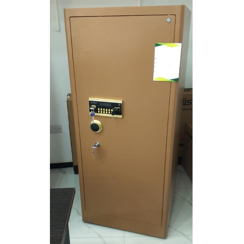 Safeguard your valuables with TRIX Security Steel Safe. Equipped with digital, key, and fingerprint lock, this 105kg safe is sure to keep all your important belongings secure. Standing at 60cm x 56cm x 150cm, it's the perfect size for big items. Take a risk and protect what matters most!